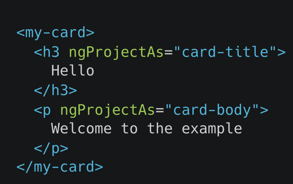 With aliases, we can now project anything into those slots by using the attribute ngProjectAs in the parent component: